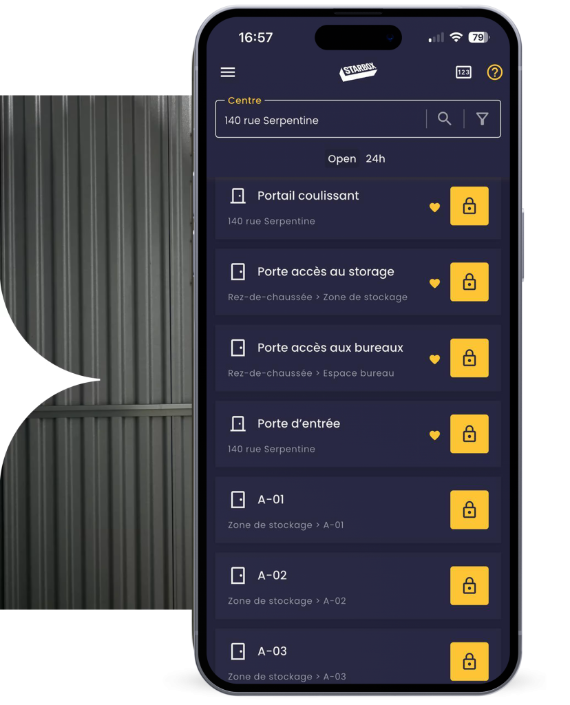 Fini les clefs, cadenas et codes oubliés. Chez Starbox, l’accès se fait via votre smartphone grâce à l’application Secure Storage. Vous pouvez donner l’accès à votre famille, vos amis, ou le garder pour vous. C’est aussi ça, le self-stockage réinventé.